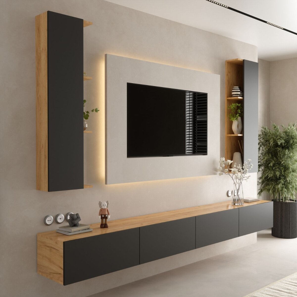 - Einsatzbereiche: Ideal für Wohnzimmer, Medienzonen und TV-Wohnwände. Harmoniert mit modernen Sofas, Regalen und Couchtischen in Holz- oder Schwarz-Akzenten.