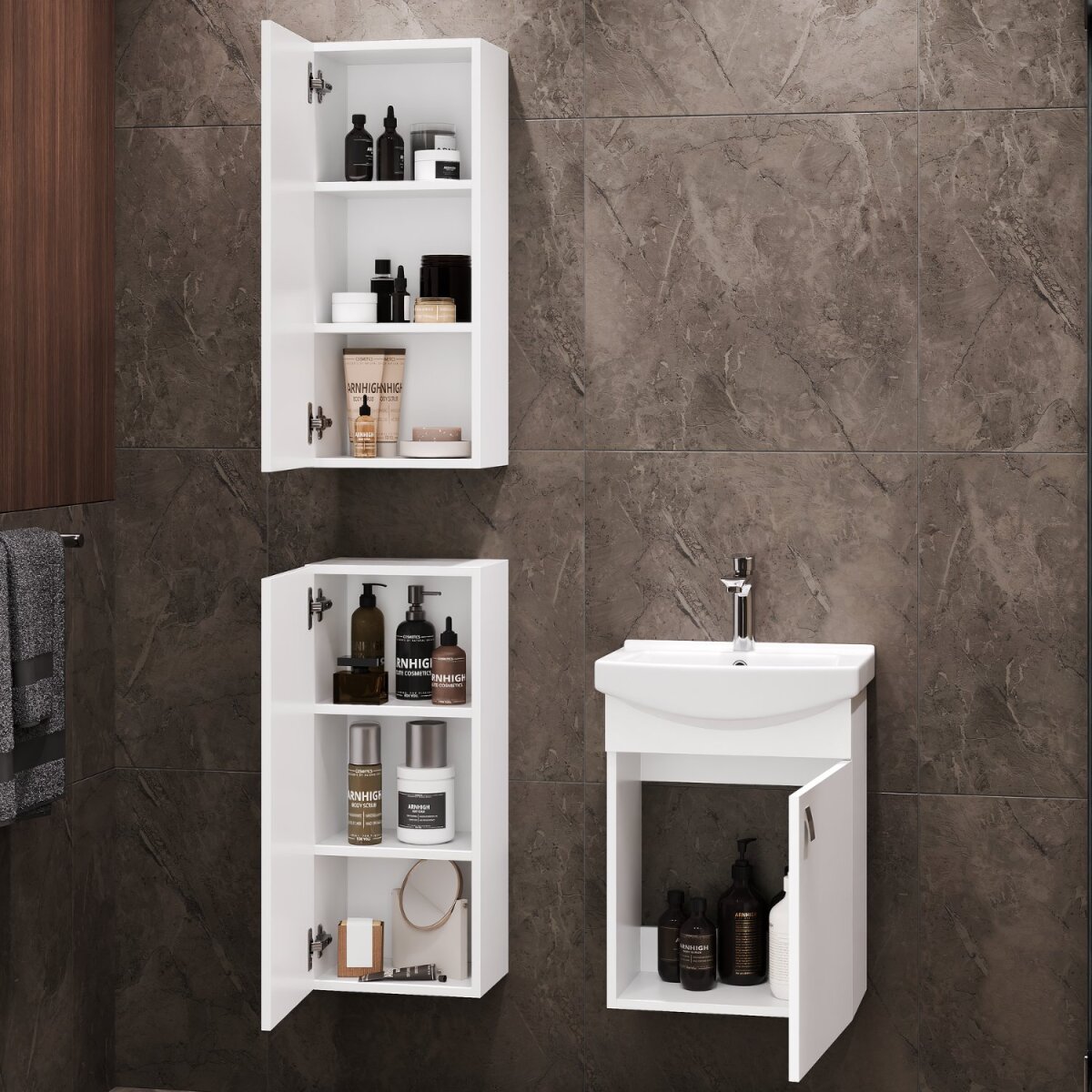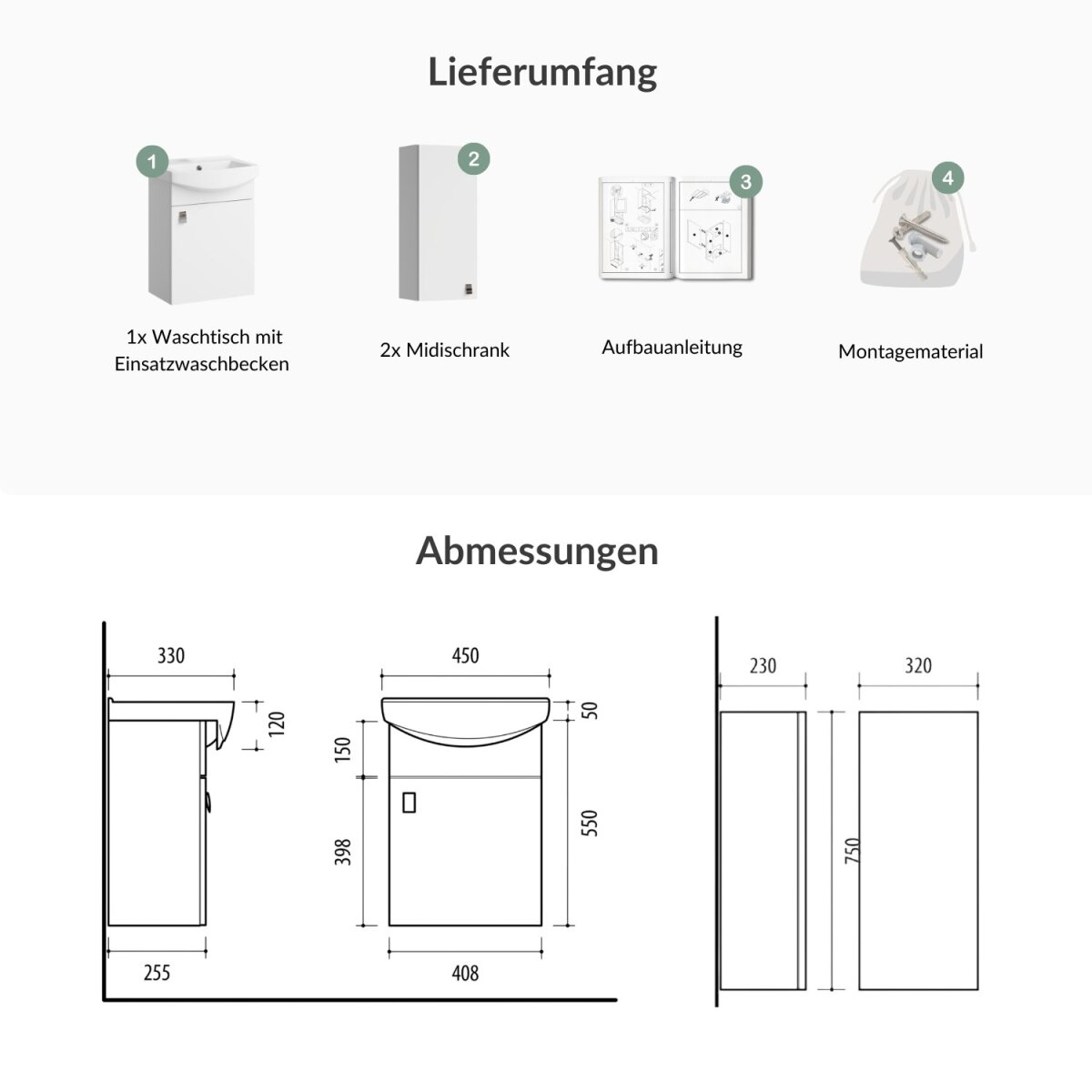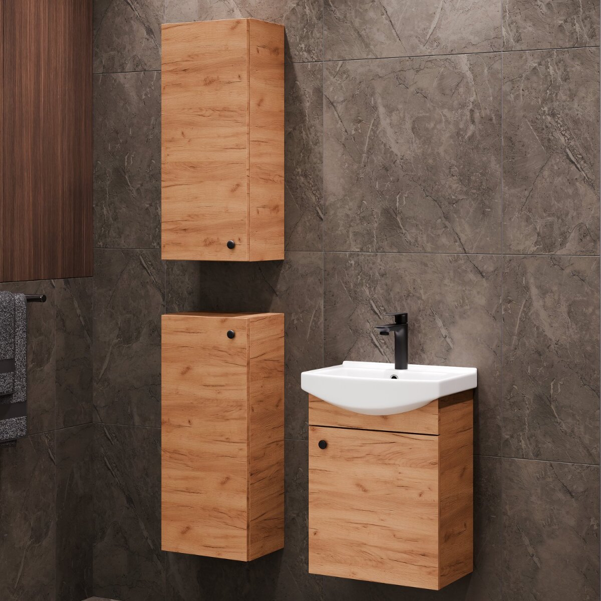 Badmöbel-Set – Waschtisch mit Keramikwaschbecken 45 cm & zwei Midischränke
