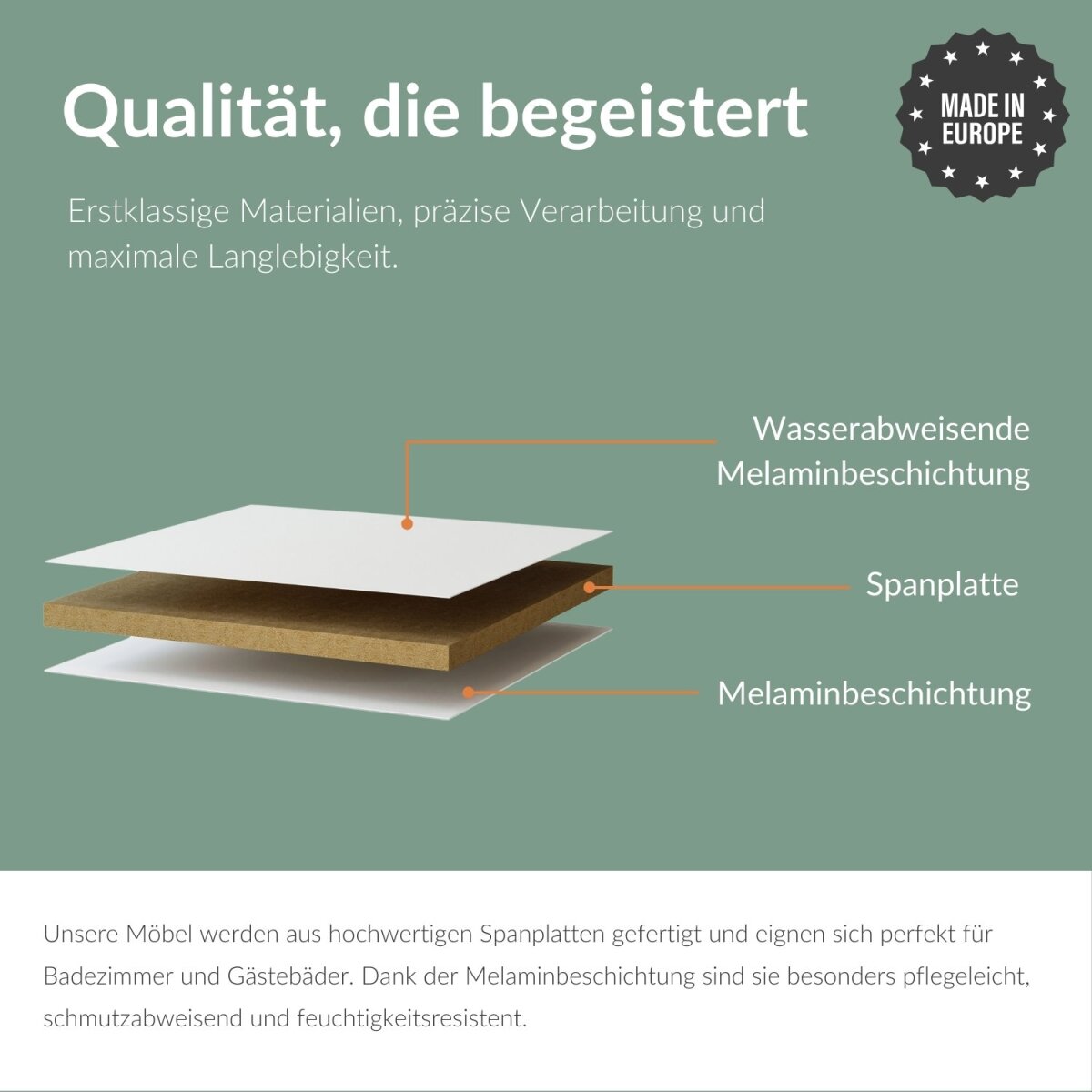 - Modernes, zeitloses Design – kombinierbar mit verschiedenen Badstilen