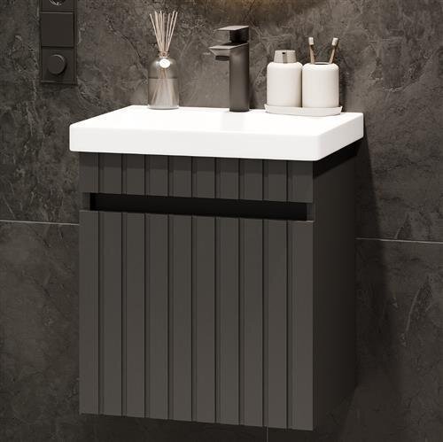 Wählen Sie zwischen einem Waschtisch mit einer geräumigen Schublade oder einer Tür, um Ihre persönlichen Pflegeprodukte und Handtücher ordentlich zu verstauen und somit für eine aufgeräumte Umgebung zu sorgen. Ein weiteres Merkmal, das unser Badmöbel Set auszeichnet, ist die langlebige Farb-Lackierung, die nicht nur für eine ansprechende Optik sorgt, sondern auch eine robuste und strapazierfähige Oberfläche bietet. Selbst in feuchten Umgebungen wie dem Badezimmer bleibt die Farbe unverändert und strahlend, ohne zu verblassen oder abzublättern.
