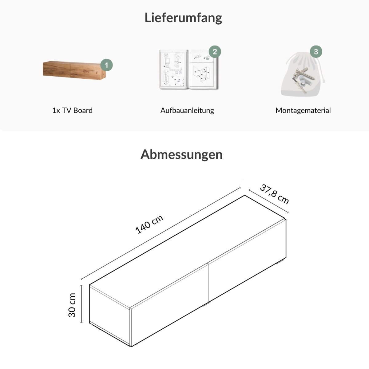 | Lieferungsumfang: | 1x TV-Board, 1x Montageanleitung, 1x Montagematerial |
