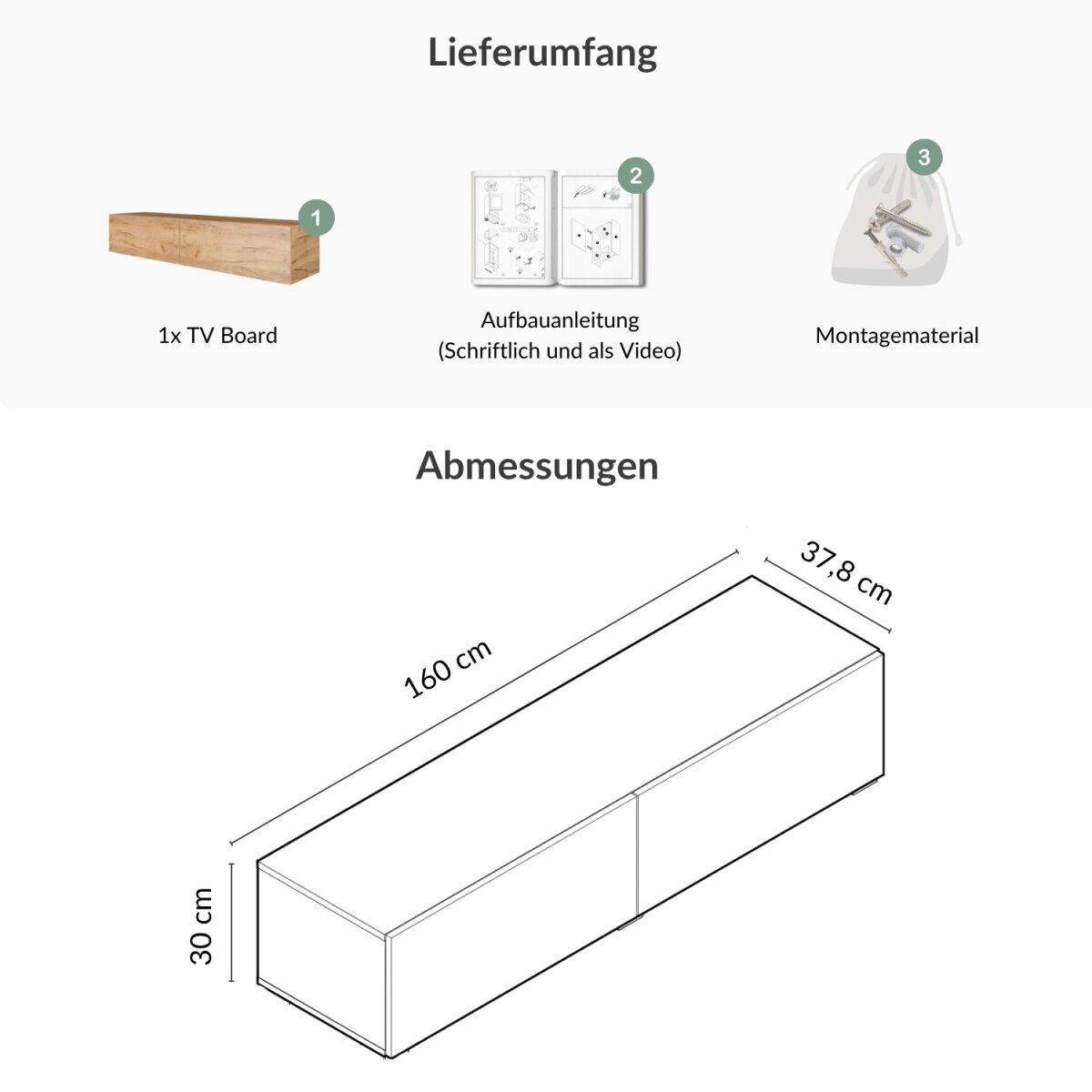 | Lieferungsumfang: | 1x TV-Board, 1x Montageanleitung, 1x Montagematerial |