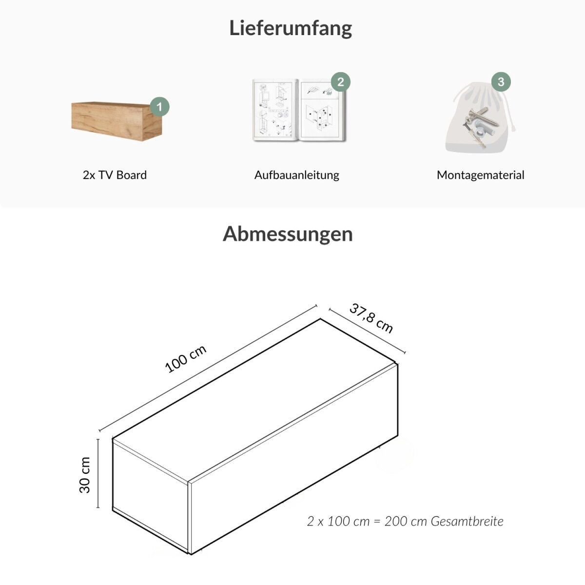 | Lieferungsumfang: | 2x TV-Board, 1x Montageanleitung, 1x Montagematerial |