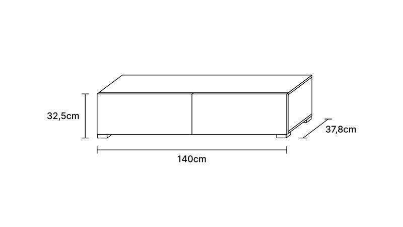 - Maße & Format: Je Board: 140 × 32,5 × 37,8 cm (B × H × T); insgesamt 280 cm Breite bei Doppelmontage. Je Board 2 Fächer hinter 2 Klappen.