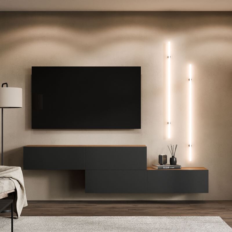Ob hängend mit schwebender Optik oder stehend mit Füßen – die Montage passt sich Ihrem Wohnstil an. In Kombination mit weiteren WEST-Elementen entsteht im Handumdrehen eine individuelle TV Wohnwand.