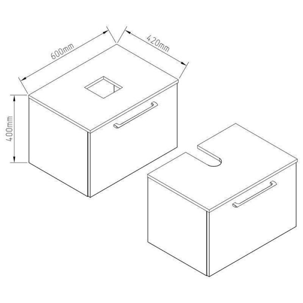 | Maße Waschtisch ohne Waschbecken (B x H x T): | 60 x 40 x 42 cm |