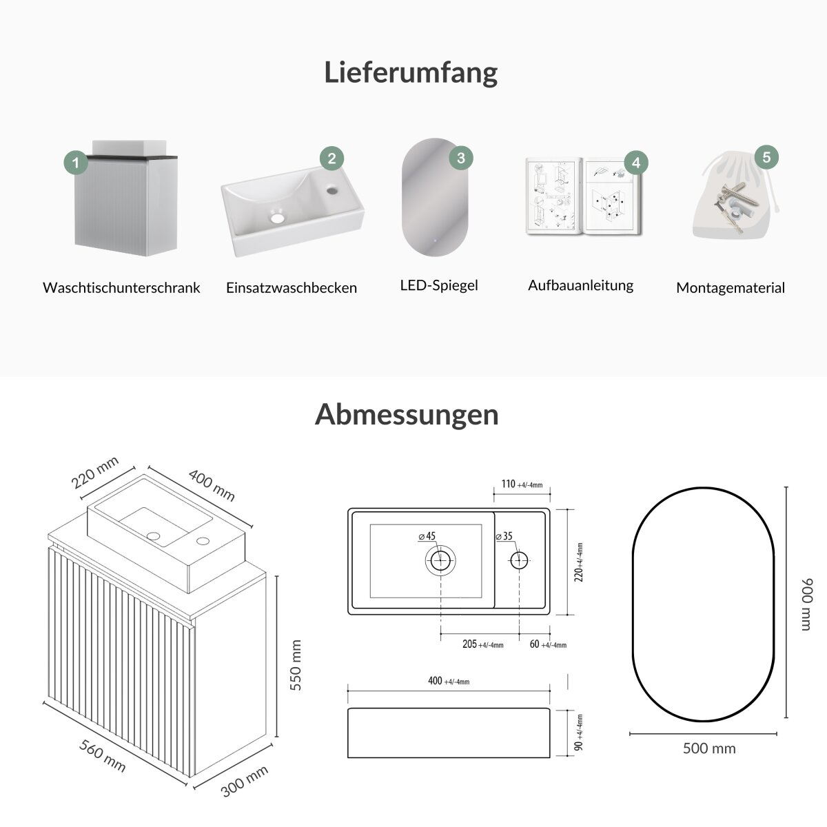 This stylish washbasin set combines thoughtful functionality with modern design, making it the perfect solution for small bathrooms and guest WCs. High-quality materials, flexible design options, and an elegant LED mirror make this wash area a true highlight in any setting.
