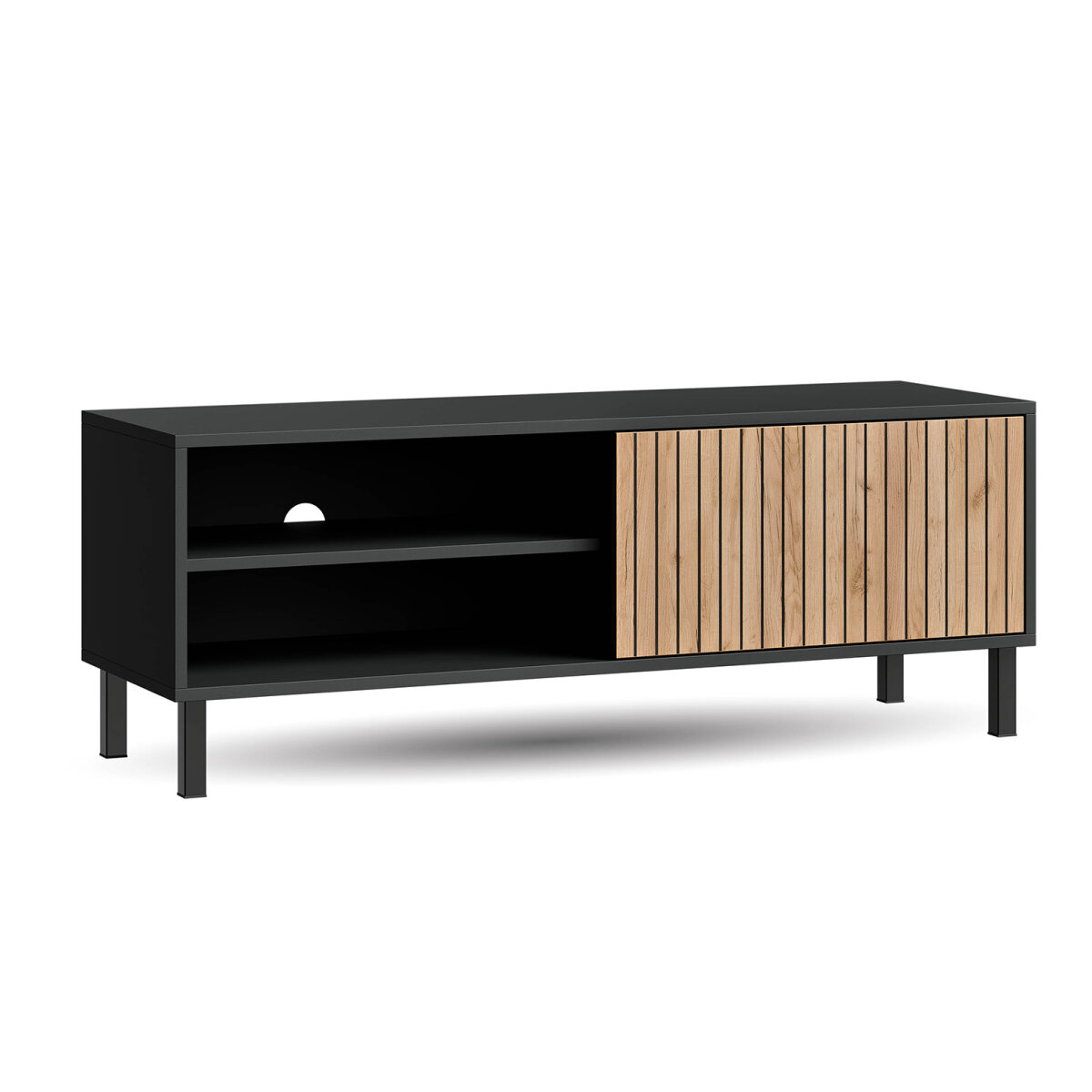 Das TV-Board LIORA verbindet edles Design mit sorgfältiger Verarbeitung und setzt in jedem Wohnraum einen modernen Akzent. Der Korpus präsentiert sich stets in mattiertem Anthrazit – bewusst zurückhaltend, um die ausgewählte Front perfekt in Szene zu setzen. Für Ihre individuelle Gestaltung stehen zwei Größen, 120 cm und 150 cm, sowie zwei Frontfarben zur Wahl: Weiß für eine klare, zeitlose Ästhetik oder Gold Eiche für eine warme, natürliche Note. So entsteht ein Möbelstück, das sich mühelos Ihrem Stil anpasst und Ihrem Wohnzimmer eine besondere, stilvolle Ausstrahlung verleiht.
